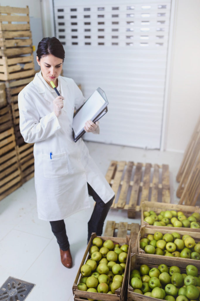 Woman Specialist in Food Quality and Health Control Checking Apples