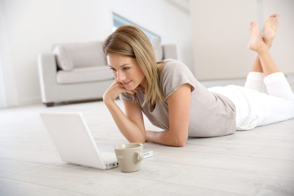 Woman websurfing on the net with laptop