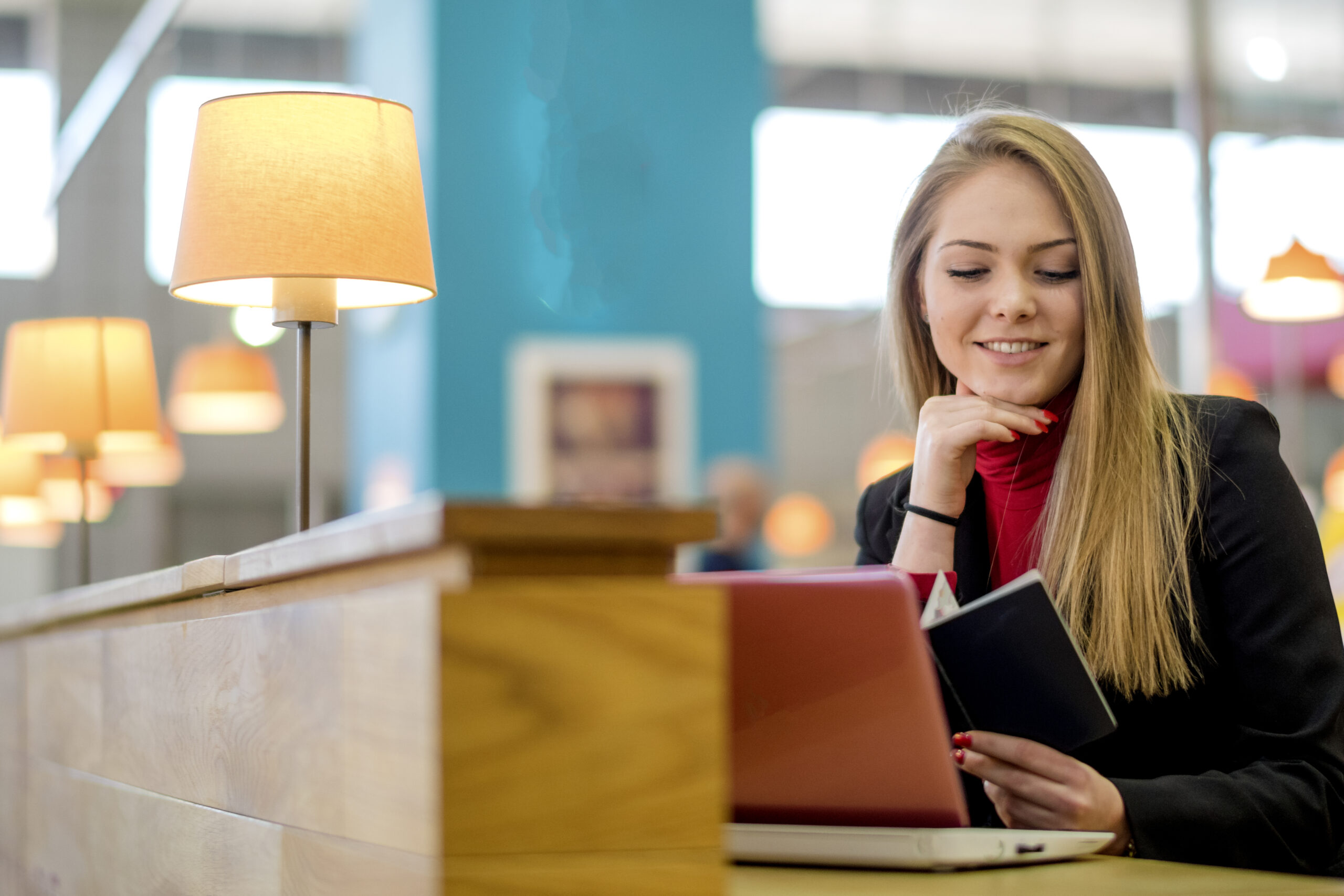 Young beautiful woman working in restaurant ID: 76636 Young beautiful freelancer woman working in café