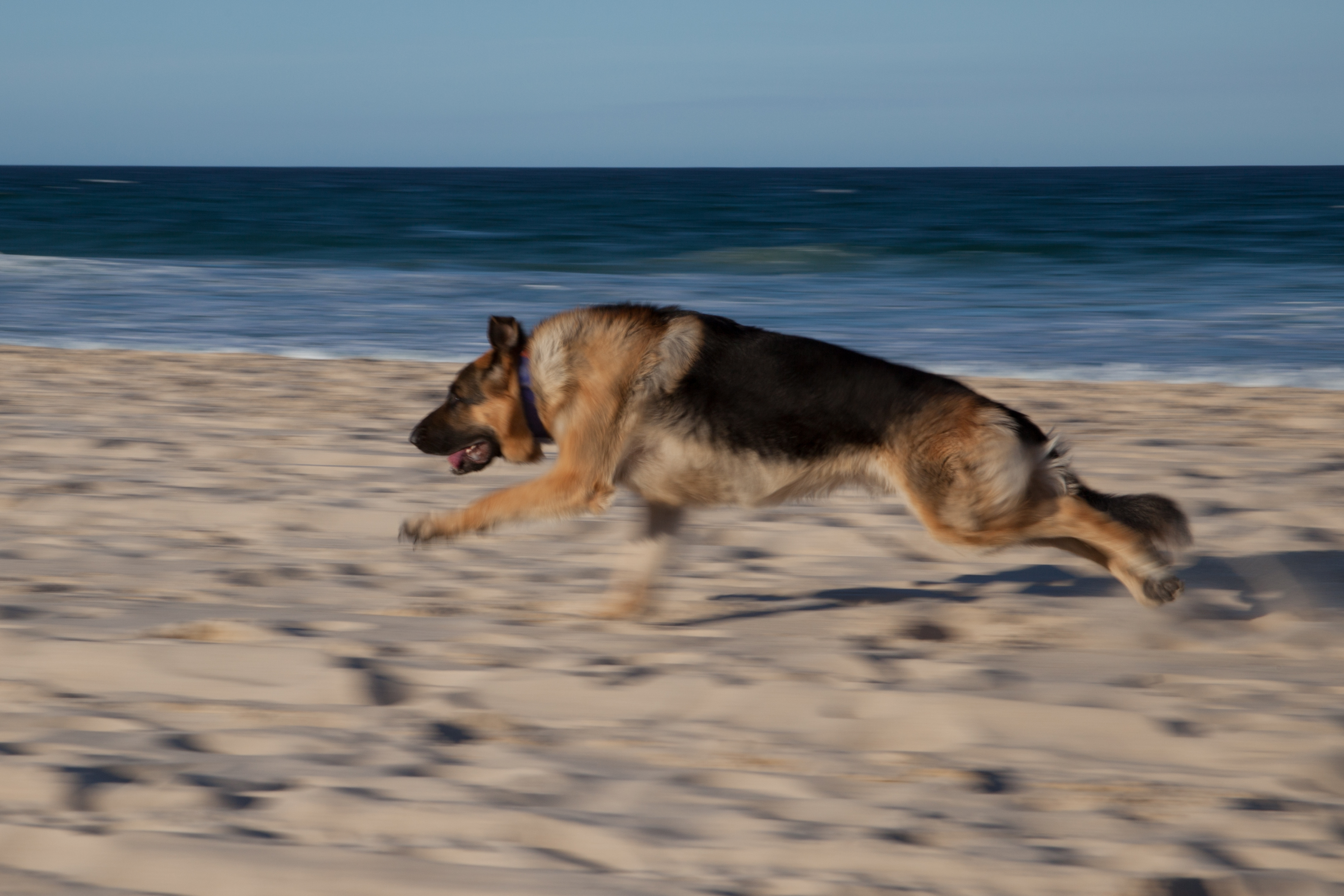Young German Shepherd running on the beach