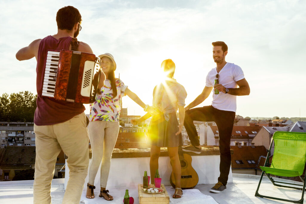 Young people having fun at rooftop party