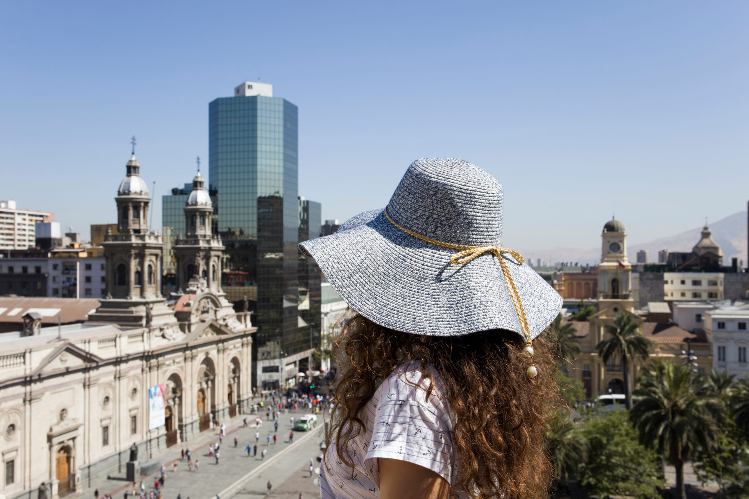 young woman with hat looking at santiago chile on a ID: 34208 Young woman with hat looking at Santiago Chile on a sunny day