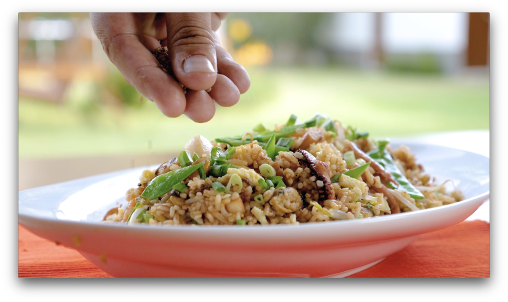 Video: Adding Sesame Seeds on a Fried Rice with Calamari. A Peruvian and Chinese food mixture called “Chaufa de Mariscos”.