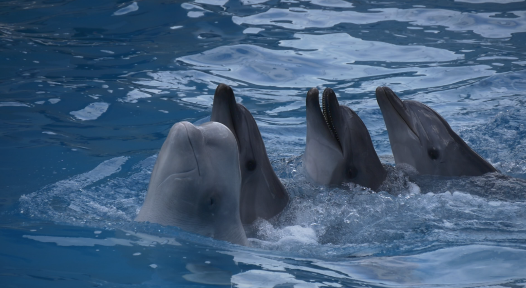 Video: Group of dolphins headed white whale funny swim for each other Download Video (Español) Restrictions for use Free Use, full media, worldwide.