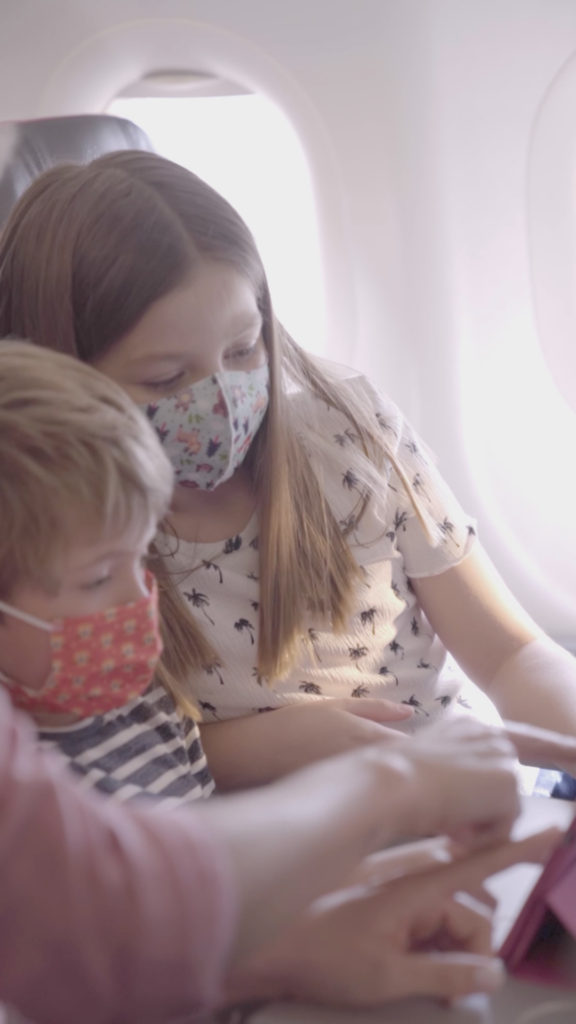 Video: Niños con mascarilla utilizando tablet en cabina economy Download Video (Español) Origin Photoshoot Restrictions for use Free Use, full media, worldwide.