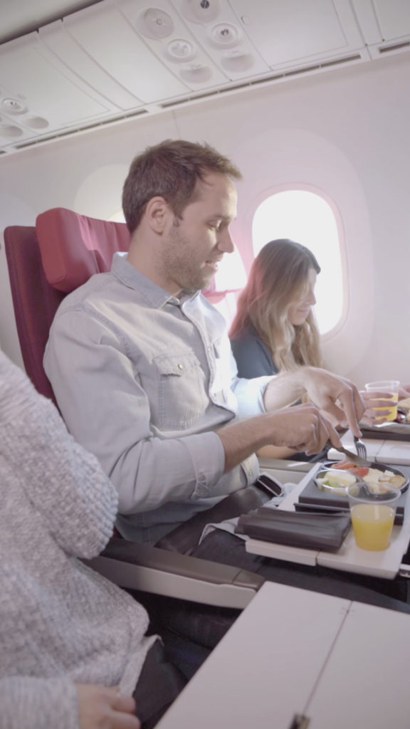 Video: Pasajeros disfrutando el menú de cabina economy